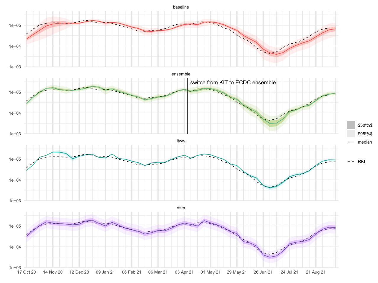 mutate(metric = recode(metric, mae = "MAE", wis = "WIS", sharpness = "sharpness", underprediction = "underprediction", overprediction = "overprediction", mean_error = "rescaled MAE", coverage_50 = "coverage 50% PI [%]", coverage_95 = "coverage 95% PI [%]"))  %>%